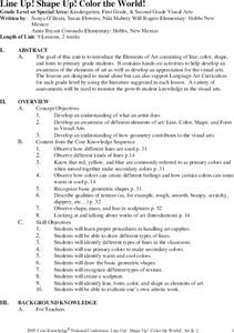 Third graders discover elements in visual art. In this visual art instructional activity, 3rd graders explore the use of line, shape, and color in visual art. After reviewing works of art, students create unique art pieces. Technology...