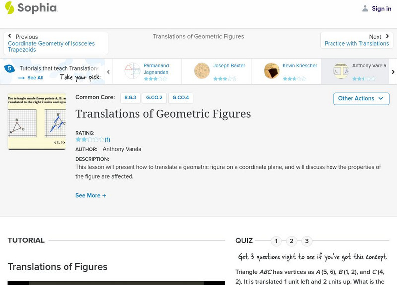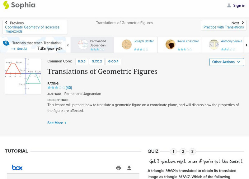 This lesson will present how to translate a geometric figure on a coordinate plane, and will discuss how the properties of the figure are affected. It is 3 of 5 in the series titled "Translations of Geometric Figures."