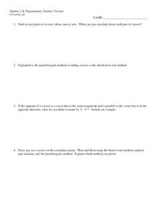 In this geometry worksheet, students investigate vectors. They add, subtract and identify the magnitude of each vector. There are 4 questions with an answer key.
