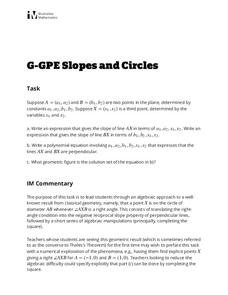 An upper-level treatment of what is often presented as a basic concept (the right angle of an inscribed circle on the diameter), this activity really elevates the mathematical thought of the learner! Expected to develop formulas...