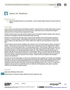 Searching for a detailed lesson to assist in describing rotations while keeping the class attentive? Individuals manipulate rotations in this application-based lesson depending on each parameter. They construct models depending on the...