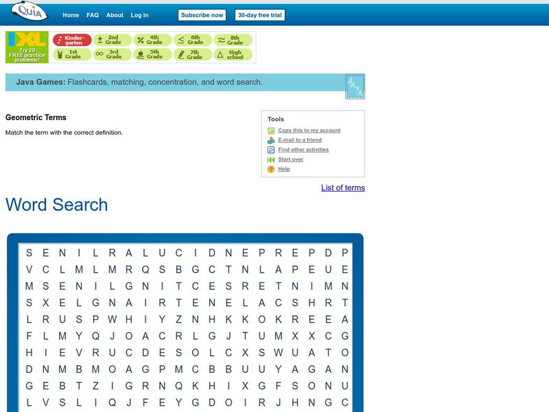 Do you need practice remembering or learning different geometry vocabulary words and definitions? This word search is the web site for you! There is a link to a list of terms with definitions you can click if you want to see if you are...