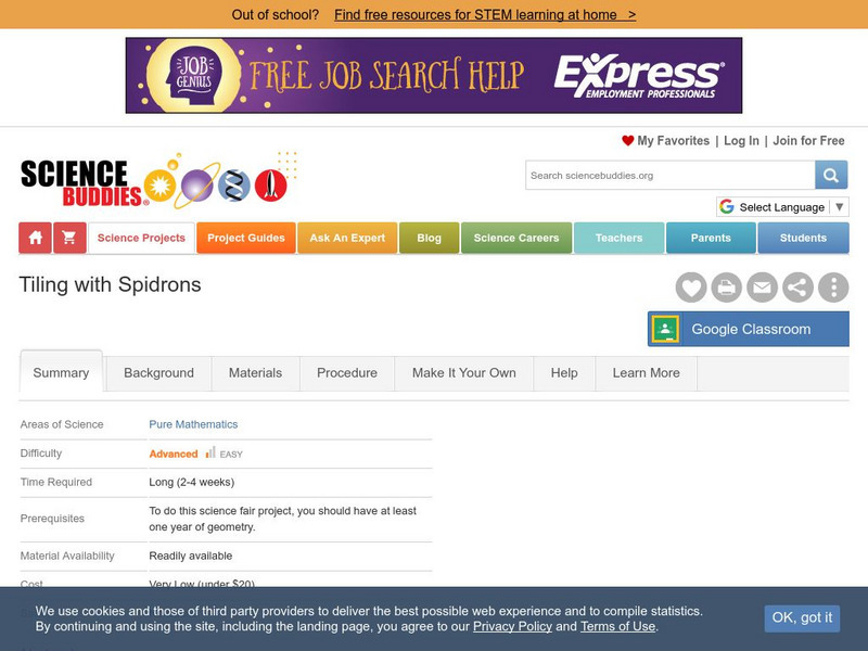 The goal of this PBS lesson is for students to apply spatial reasoning, problem solving, and critical thinking skills to assess which regular polygons will tessellate. A detailed lesson plan that includes related worksheets, lesson...