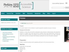 Friction is a force that can be felt, which means that learners with visual impairments can experiment to feel and understand the concept of friction. They slide a rock along a smooth table, and then they slide a rock across sandpaper,...