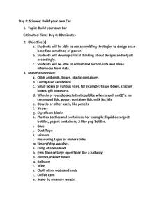 Students design and build their own cars. In this physics lesson, students test their car's speed and make changes when necessary. They graph data and analyze results.