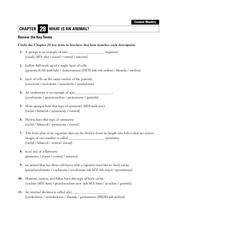 In this animal activity, students review characteristics of animals including body symmetry, development, and skeletal structure. This activity has 3 short answer questions.