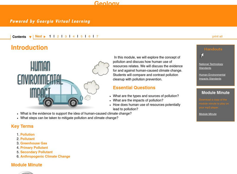 In this module, we will explore the concept of pollution and discuss how human use of resources relates. We will discuss the evidence for and against human-caused climate change. Students will compare and contrast pollution cleanup with...