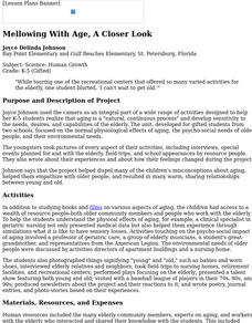Students realize that aging is a "natural, continuous process" and develop sensitivity to the needs, desires, and capabilities of the elderly by interviewing elderly community members and photographing age related things.