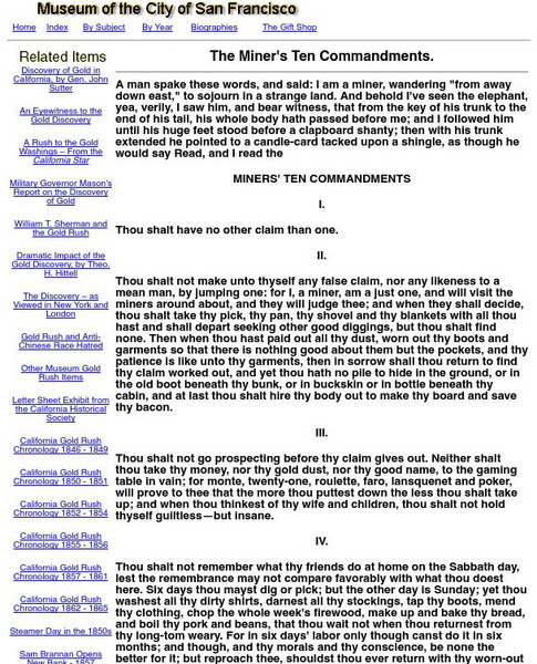 Virtual Museum of the City of San Francisco: The Miners' Ten Commandments