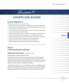 Student demonstrate understanding of both sides of the argument between Jefferson and Marshall that led to the strengthening of the Judicial Branch through the creation of judicial review. Unit is comprised of five lessons and fits into...
