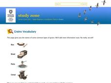 In this grains worksheet, students look at pictures and identify what the different pictures of grains are. Students complete 4 multiple choice questions.