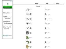 In this ESL word and picture matching learning exercise, students analyze 7 pictures that depict common animals. Students match these with the words that describe them.