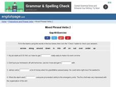 In this grammar worksheet, students study mixed phrasal verbs. Students complete an interactive worksheet consisting of 20 fill in the blank questions and the ability to self check directly online.