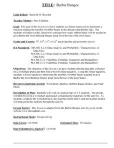 Middle and high schoolers collect and analyze their data. In this statistics lesson, pupils analyze graphs for linear regression as they discuss the relationship of the function to the number of rubber bands and the distance of the...