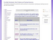 Develop conceptual knowledge of a quadratic equation and its solutions in your classes. The third algebra lesson in a series of four introduces learners to solving quadratic equations slowly. The first activity explores the zero product...