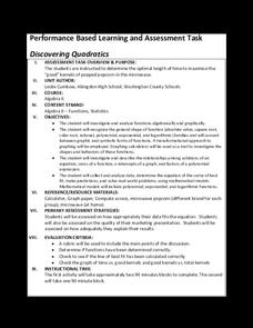 Get to know quadratics from a couple of different perspectives. Classmates work in small groups to determine the optimal cooking time for microwave popcorn. Group members pop bags of popcorn for different times and collect data on the...