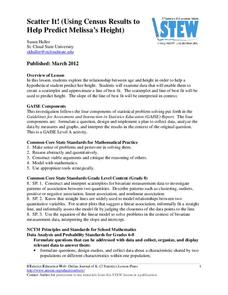 Pupils use the provided census data to guess the future height of a child. They organize and plot the data, solve for the line of best fit, and determine the likely height and range for a specific age.