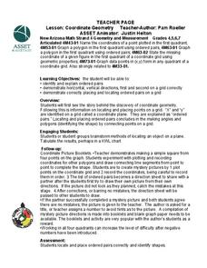 Students explore graphing. For this math lesson plan, students graph ordered pairs in the coordinate plane, write the coordinates of points shown on a plane, and create designs or pictures using ordered pairs.