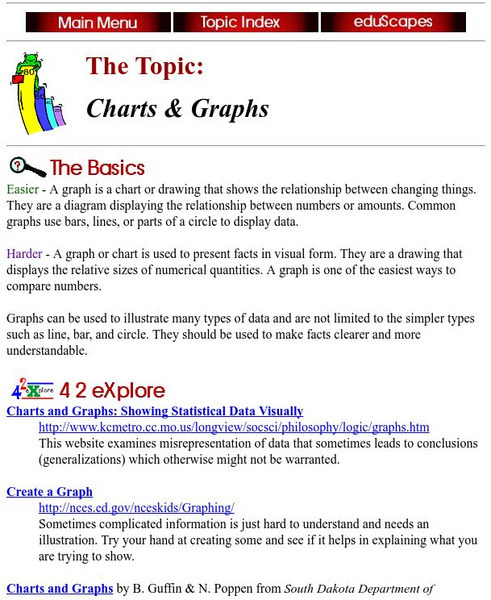 Brief descriptions of charts and graphs, followed by links to larger sites on the same subject.