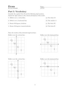 In this reflections and symmetry activity, students draw lines of symmetry in shapes and patterns and reflect letters over lines in graphs. Students complete 20 problems.