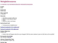 Students predict the behavior of coffee in a cup while it is dropped during a demonstration. They relate their observations to the weightless conditions that astronauts experience in space and discuss the concept of free-fall.