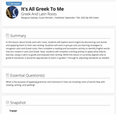Ancient Greeks and Romans have contributed far more to modern culture than mythic heroes and stunning architecture. Greek and Latin roots are the foundation of many English words. Middle schoolers engage in an activity that asks them to...