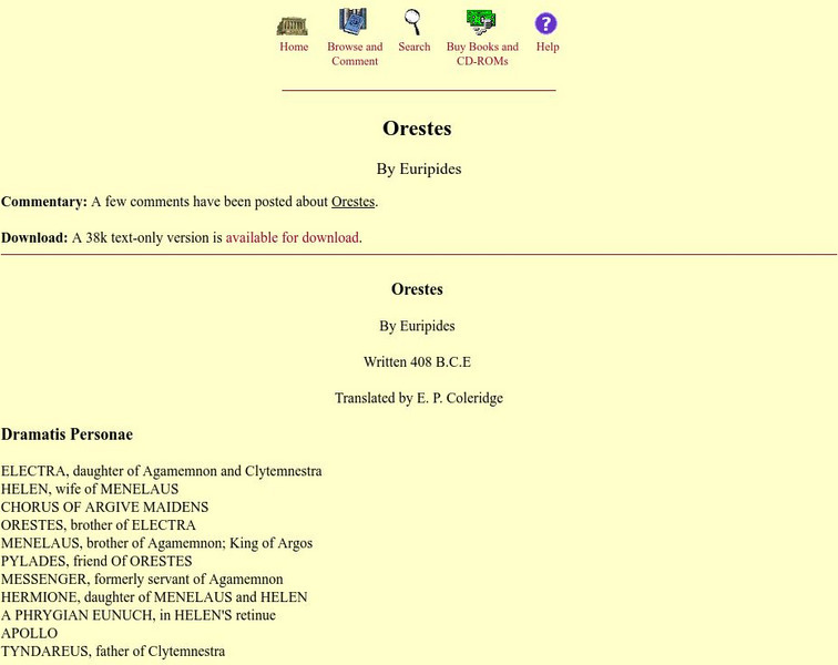 Mit: Internet Classics Archive: Orestes by Euirpides