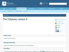 Ninth graders read and discuss part 1 of The Odyssey and create a mind map and visual images to represent vocabulary. In this reading lesson plan, 9th graders are introduced to poetry, and the Hero Cycle.