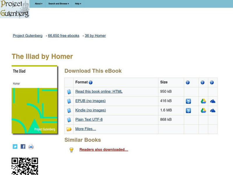 Resource presents multiple digital formats of this literary work. Edward, Earl of Derby did this translation of Homer's epic.