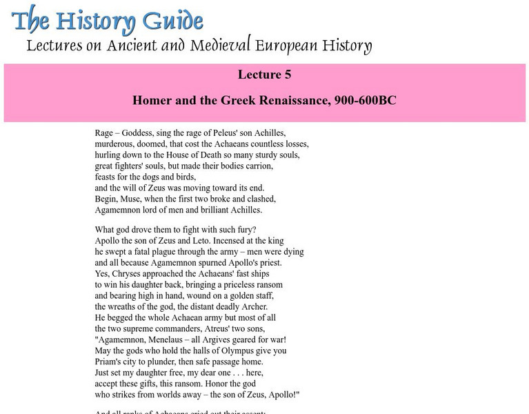 Presents a clear, readable summary of ancient Greek history from the Archaic period through the Renaissance which included Homer's epic poems. Explains major historical events and cultural trends as background for those reading Homeric...