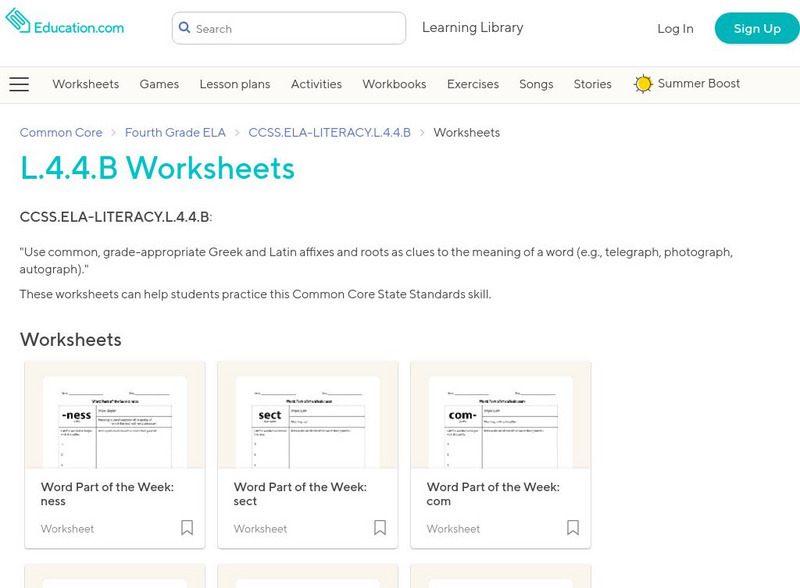 Education.com: L.4.4.b Worksheets: Use Greek and Latin Affixes and Roots as Clues