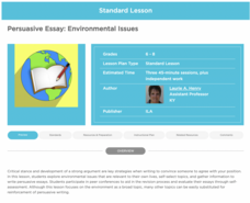 Young environmentalists learn how to craft a persuasive essay about an environmental issue they consider important. After studying the components of a persuasive essay and examining a student model, writers brainstorm possible topics and...