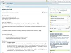 Students engage in a study of Romanticism in an attempt to build a context for how it was used. They write a 5 paragraph essay using literary devices they are familiar with. They should go back and edit their work before accepting it as...