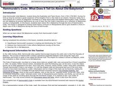 Students examine life in Babylonia during the time of King Hammurabi. They read and discuss excerpts of the Code of Hammurabi, participate in a simulation of advisors to the king, complete an online interactive activity, answer...