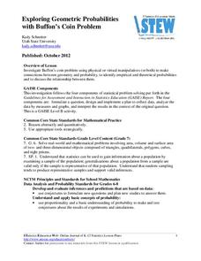Scholars create and perform experiments attempting to answer Buffon's Coin problem. They discover the relationships between geometry and probability, empirical and theoretical probabilities, and area of a circle and square.