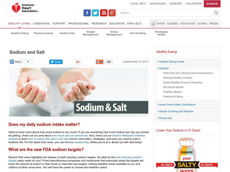 American Heart Association: Getting Healthy: Nutrition Center: Sodium