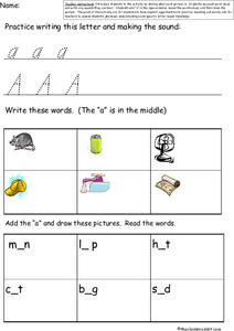 In this letter aA instructional activity, students practice printing the letters a and A, use pictures to write words with "a" in the middle, and add "a" in the middle of words and draw pictures of these words. Students complete twenty...