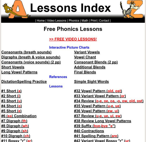 Click on any of the ten interactive charts to hear different letter and letter-blend sounds and see corresponding words and pictures. In addition, over sixty printable phonics lessons provide word lists and practice activities for the...