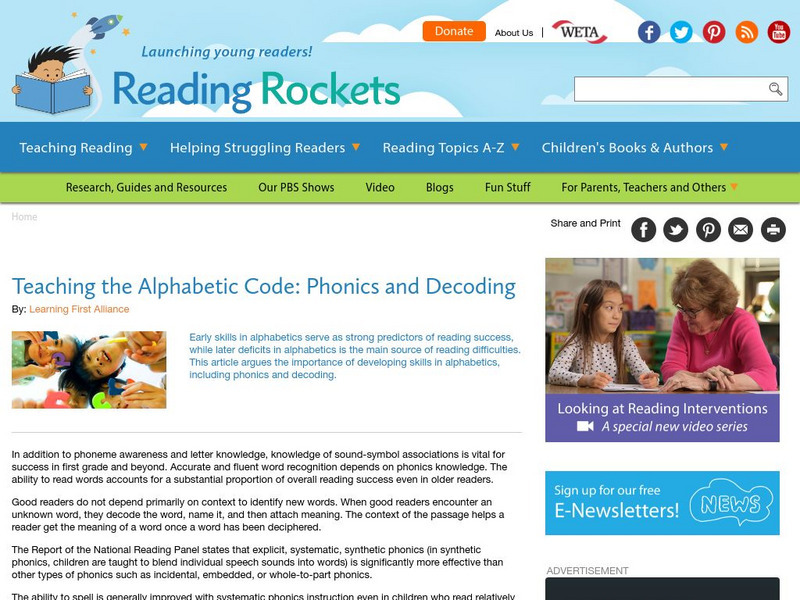 Reading Rockets: Phonics and Decoding