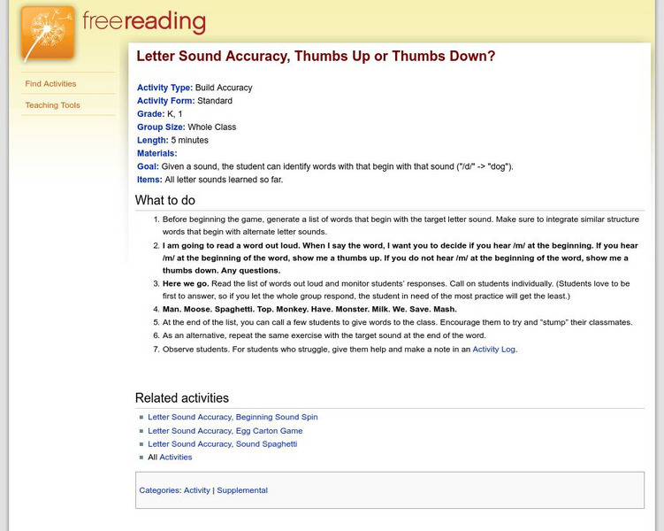 Free Reading: Thumbs Up or Thumbs Down? Letter Sound Accuracy Game