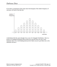 How many ways can you slice dice distribution? A short performance task asks pupils to consider different types of distributions. Given histograms showing a triangular distribution and a bimodal distribution, they create pairs of dice...