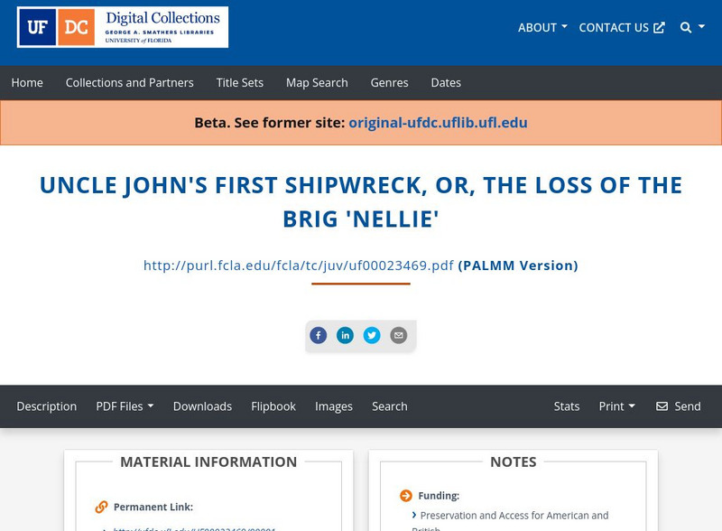 This is an online photocopy of the original of the children's book Uncle John's First Shipwreck or The Loss of the Brig "Nellie" by Charles Bruce, a nonfiction story of Uncle John's shipwreck and the loss of his ship.