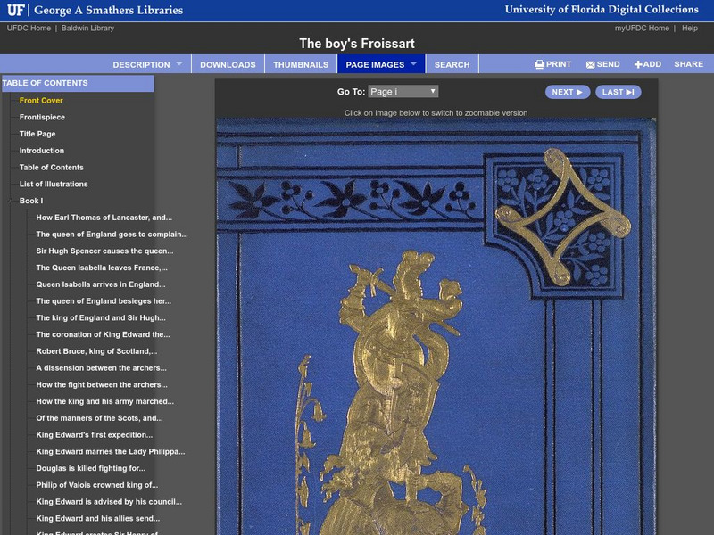 This is an online photocopy of the original text of the children's book Froissart's Chronicles by Jean Froissart (1890), a nonfiction account of adventures, battles, and customs in England, France, and Spain.