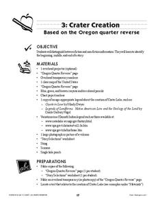 After looking at the back of a quarter featuring Oregon terrain, learners distinguish between fiction and non-fiction and identify the beginning, middle and end of a story. First, they listen to legends that describe the creation of...