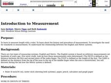 Students determine how to convert measurement. In this English Measurement lesson, students discover interesting facts about the history of measurement. Students study formulas and practice using them.