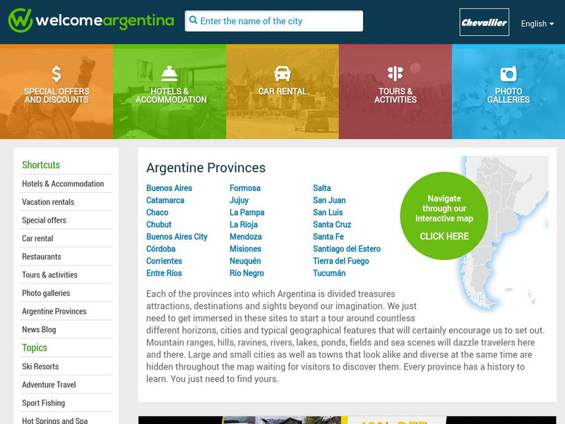 This is a site that provides information about the main cities of Argentina together with their history, landscapes, legends and services. There is travel information as well as topical content such as articles on tango, paleontology and...