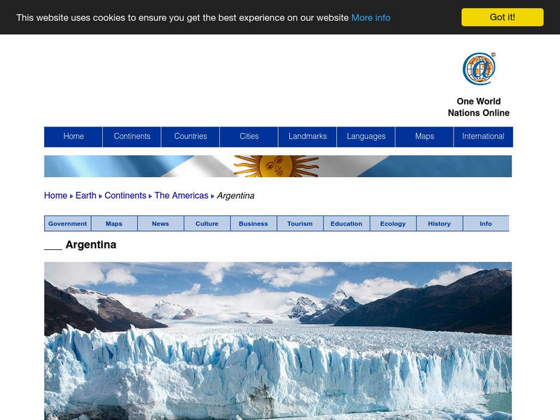 Presents a virtual travel guide and country profile of Argentina, background overview, and numerous links to comprehensive information on the country's culture, history, geography, economy, environment, population, news, government, and...