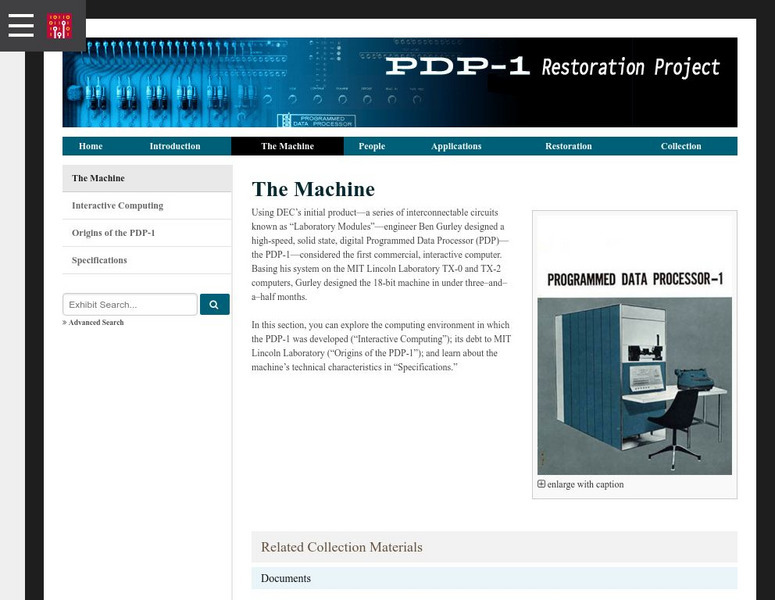 Digital Equipment Corporation (DEC) introduced the PDP-1 in 1959. It represented a radical shift in the philosophy of computer design. This site presents the history of the PDP-1, the people that worked on the PDP-1 project, how the...