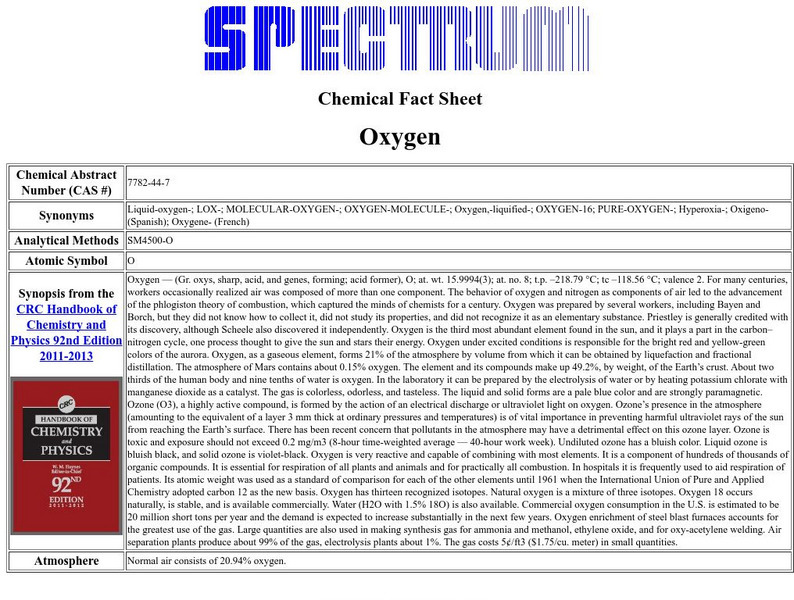 Florida Spectrum: Chemical Fact Sheet: Oxygen