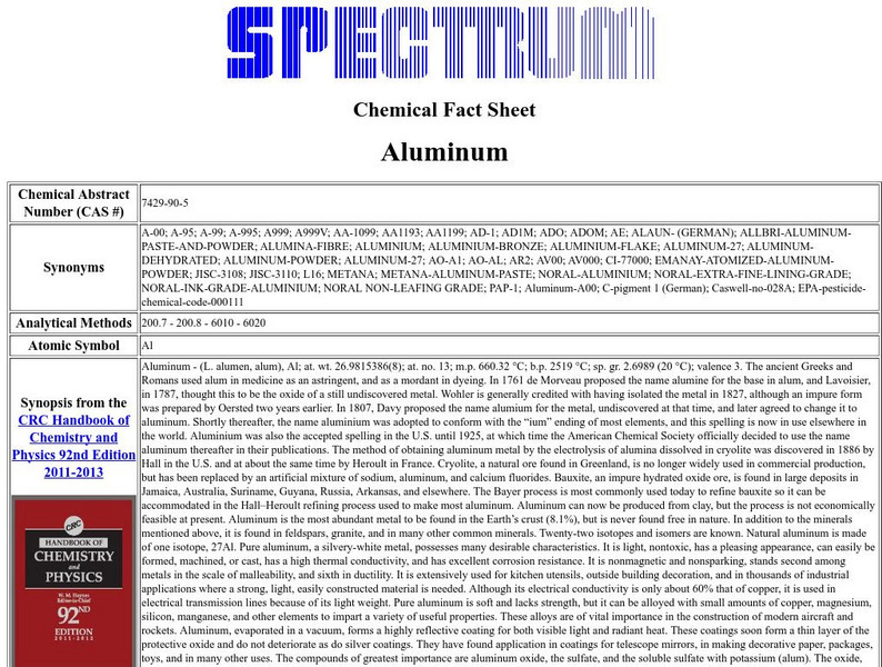 Florida Spectrum: Chemical Fact Sheet: Aluminum